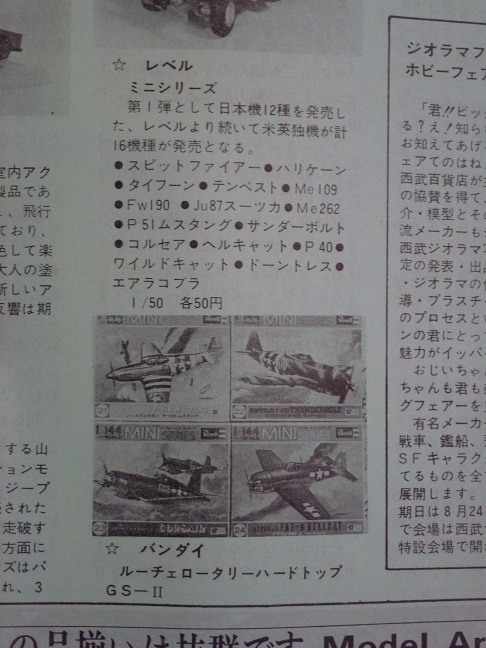 更に、外国の航空機もシリーズに加わりました。以下写真のモデルアート(1973年8月号(第77集))の「今月の新製品紹介」ではレベル・ミニ・シリーズの外国機が紹介されていました。