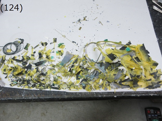 - (124) 空母二隻分の塗装に使用したマスキングシートの残骸です。かなりの量ですね。