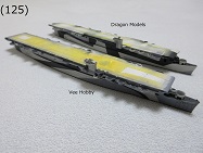 - (27)〜(29)これまでドラゴンの船体の工作について述べましたがかなり苦労しますね。(27)はVee Hobbyとドラゴンのキットの船体です。Vee Hobbyのキットでは船体は一体成型になっているのでドラゴンのキットのような船体を組む苦労はありません。
